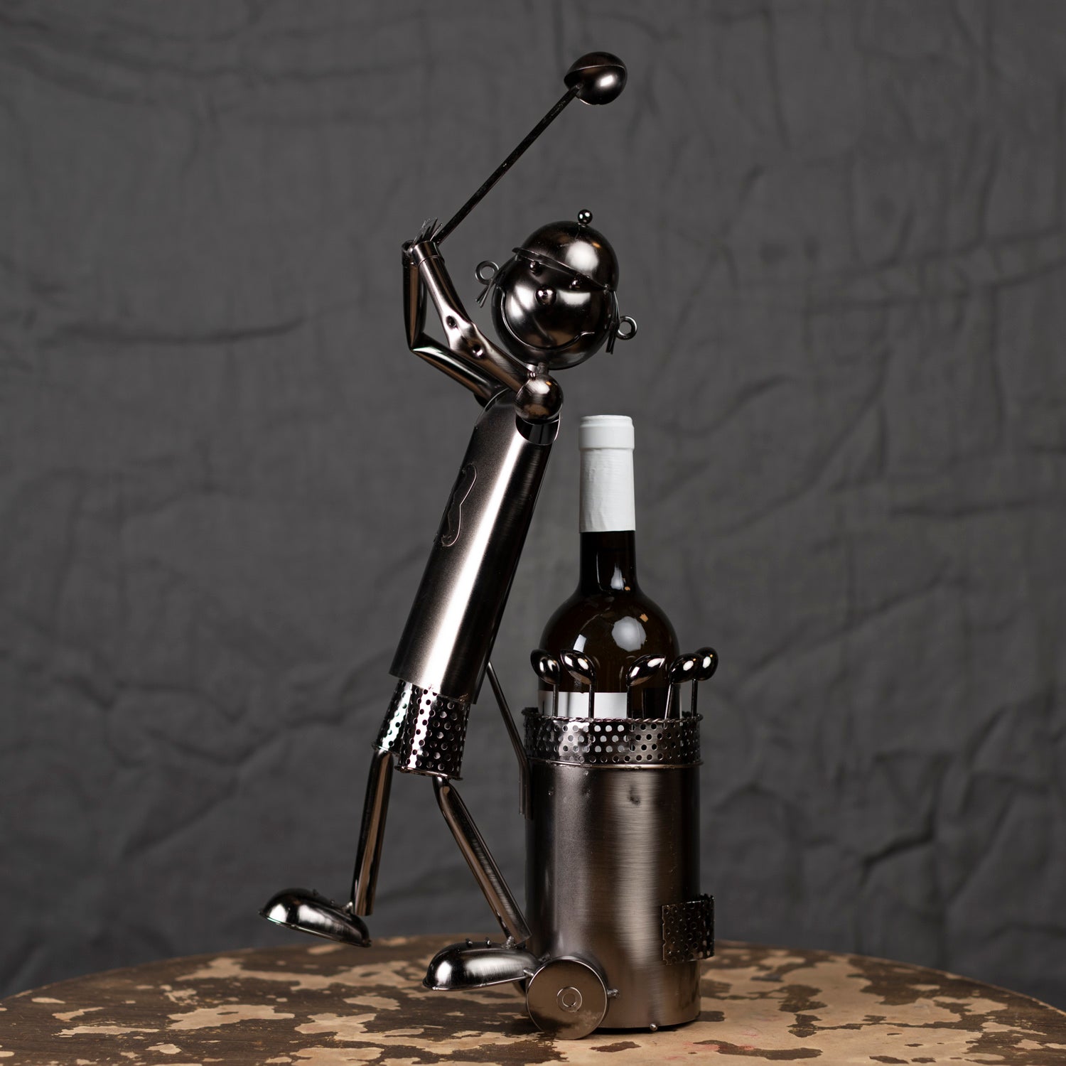 Fun and quirky metal wine bottle holders, three to choose from BBQ, Golfer and Street light. Wine not included.